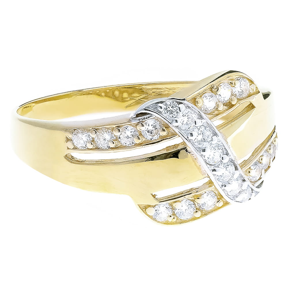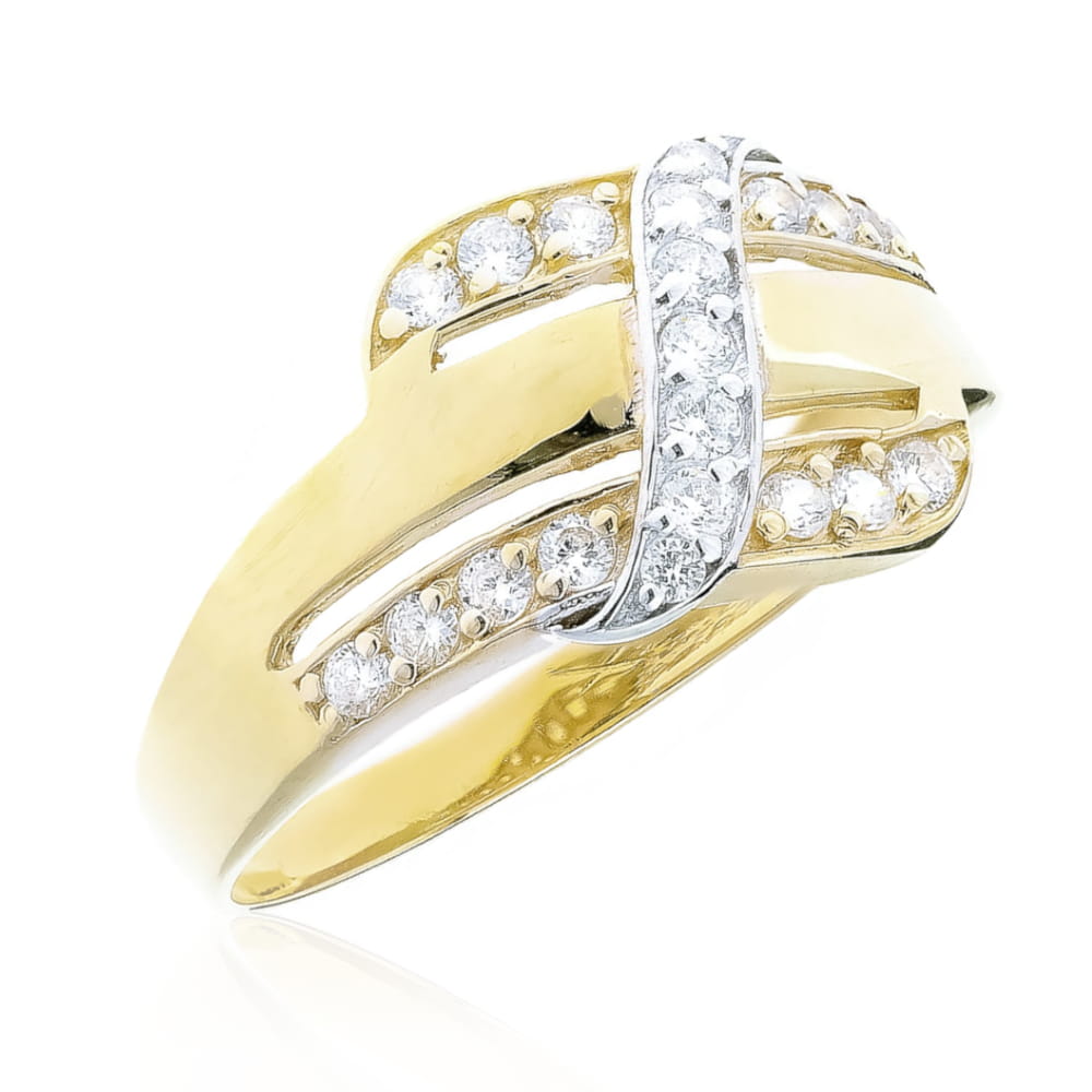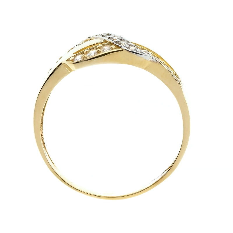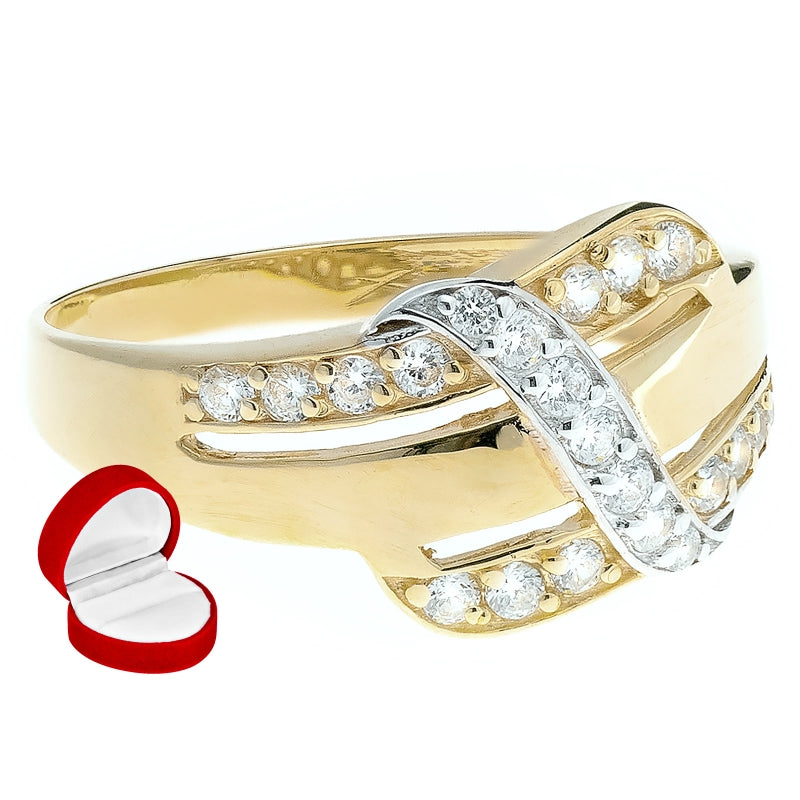 Acest inel încântător prezintă un design împletit, bogat decorat cu zirconii strălucitoare, perfecte pentru a adăuga o notă de glamour fiecărei ținute. Pe mâna unei femei, acest inel emană un farmec deosebit, atrăgând privirile.
