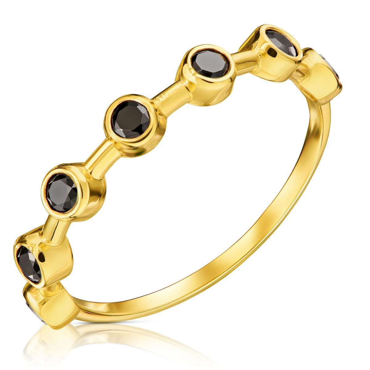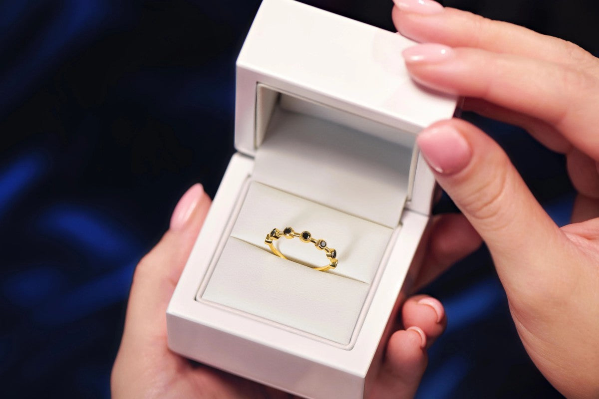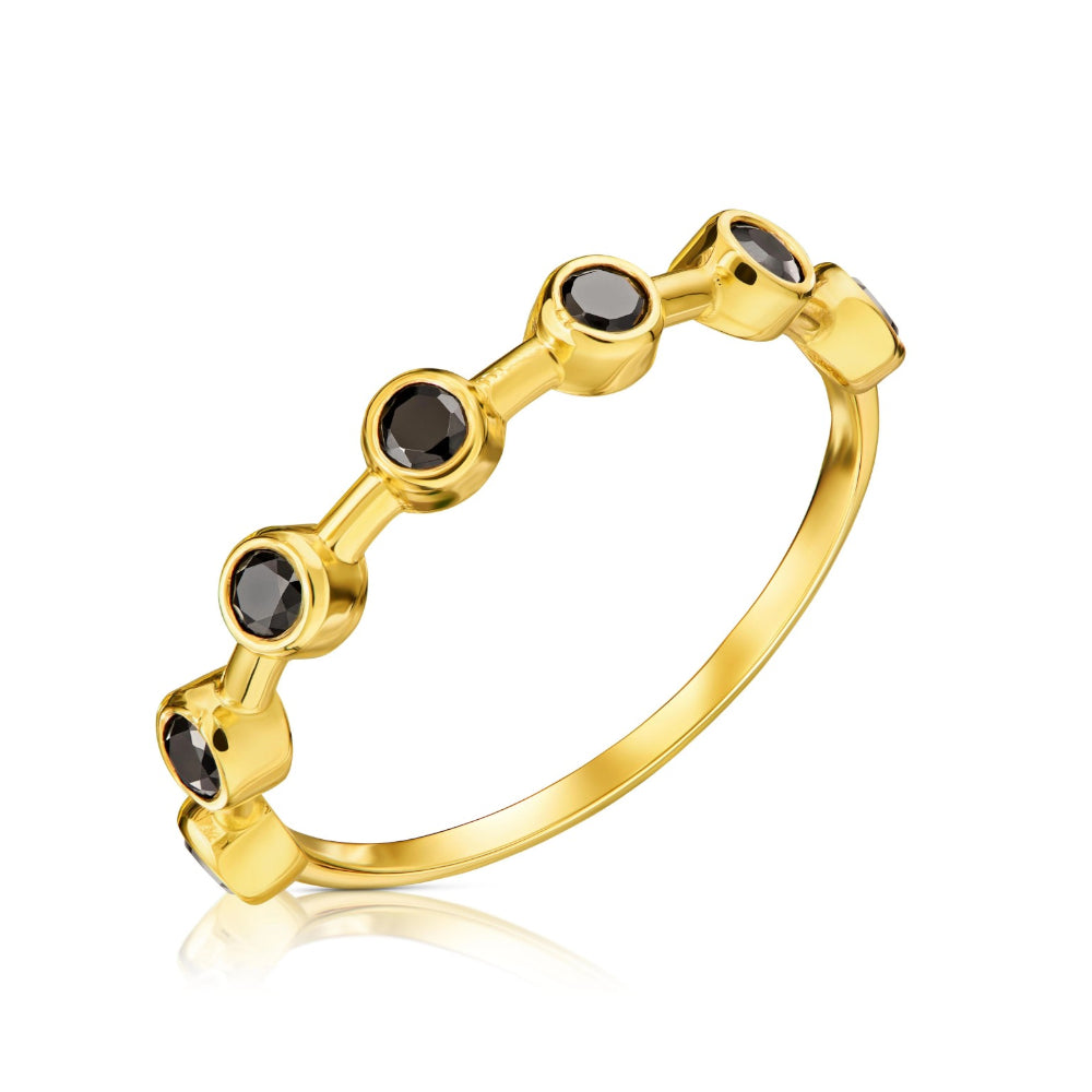 Acest inel nu este doar un accesoriu, ci o declarație de stil. Zirconiile negre, perfect integrate în designul elegant, adaugă o notă de mister și rafinament. Aurul 8K completează această frumusețe, oferind o strălucire subtilă și un farmec atemporal. Este alegerea perfectă pentru a te răsfăța sau pentru a oferi un cadou de neuitat.