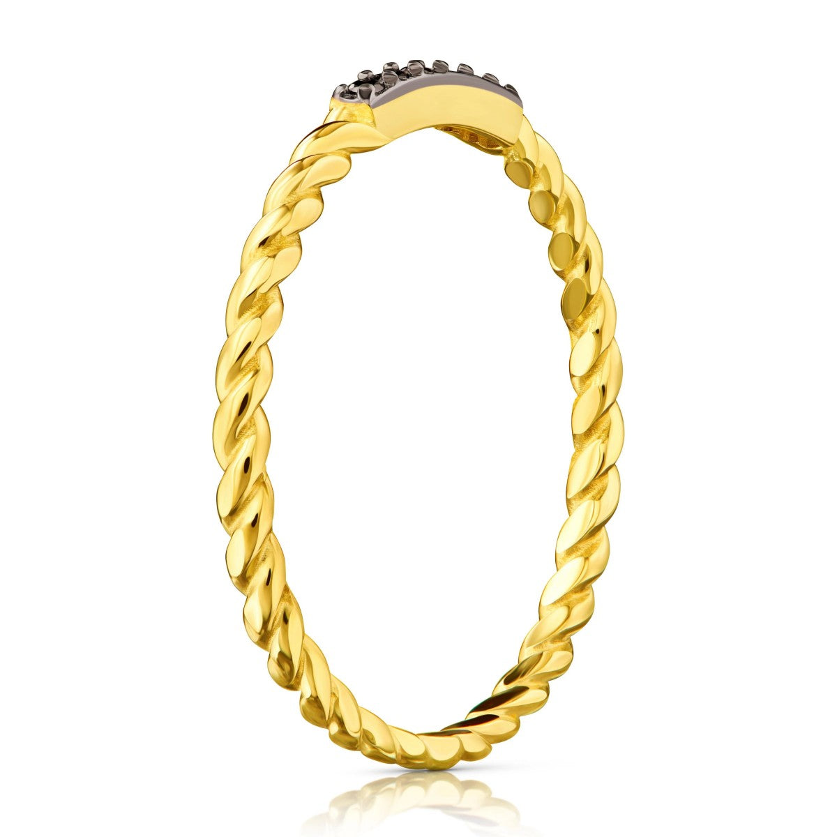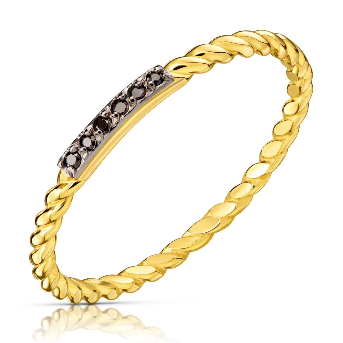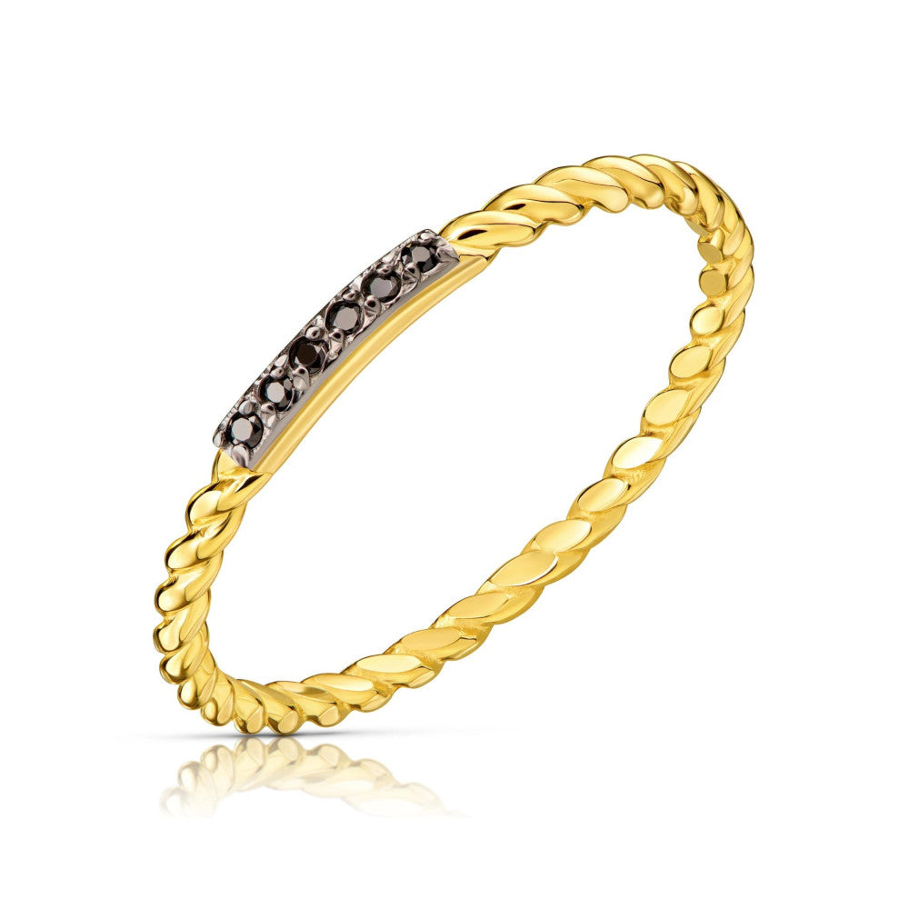 Acest inel este realizat cu măiestrie din aur 8K și prezintă o greutate aproximativă de ~0,70 - 0,95g, oferind o senzație delicată pe deget. Zirconiile negre, atent amplasate, creează un contrast elegant cu aurul, accentuând strălucirea și designul unic.
