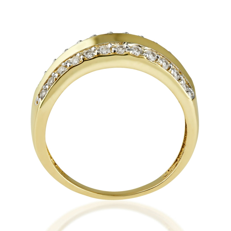 Descoperă eleganța atemporală a acestui inel din aur 8K, împodobit cu 24 de zirconii strălucitoare. Designul său rafinat, sub forma unei verighete delicate, îmbină simplitatea cu originalitatea, creând o bijuterie ce va atrage toate privirile. Fiecare zirconiu, cu diametrul de 1.5 mm, este atent fixat pentru a maximiza strălucirea și a completa perfect aurul galben cald. Cu o lățime totală a coroanei de 7.25 mm, acest inel este o declarație subtilă de rafinament și stil.