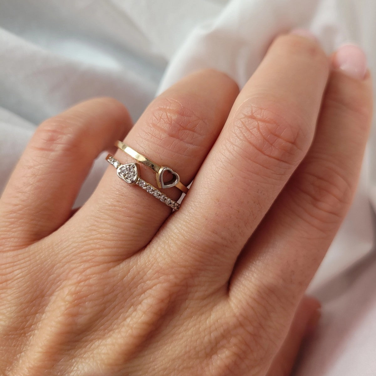 • Inel Aur 8K Două Inimi - Eleganță și Romantism