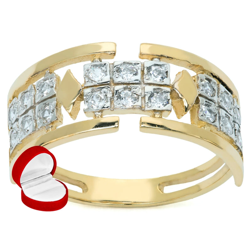 Acest inel superb este realizat din aur galben de 8K, un simbol al eleganței și al calității. Inserțiile de zirconii adaugă un plus de strălucire și rafinament.