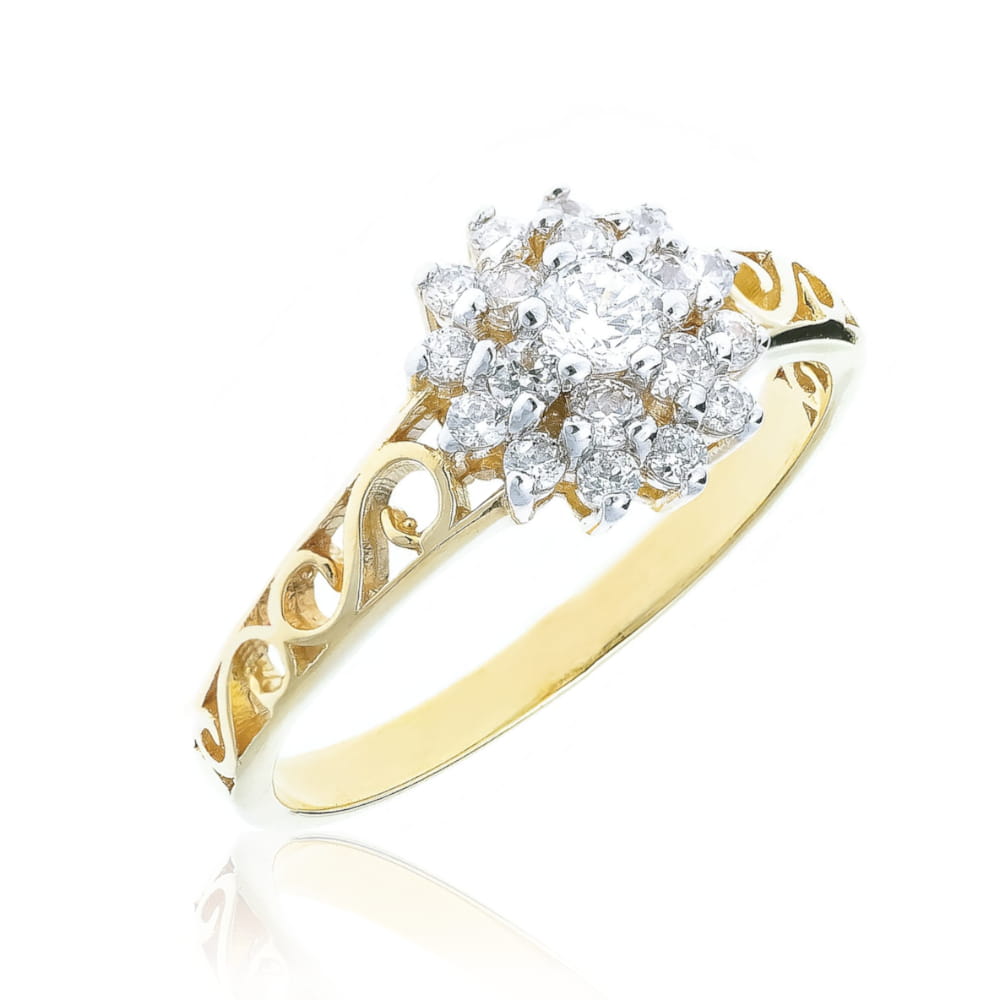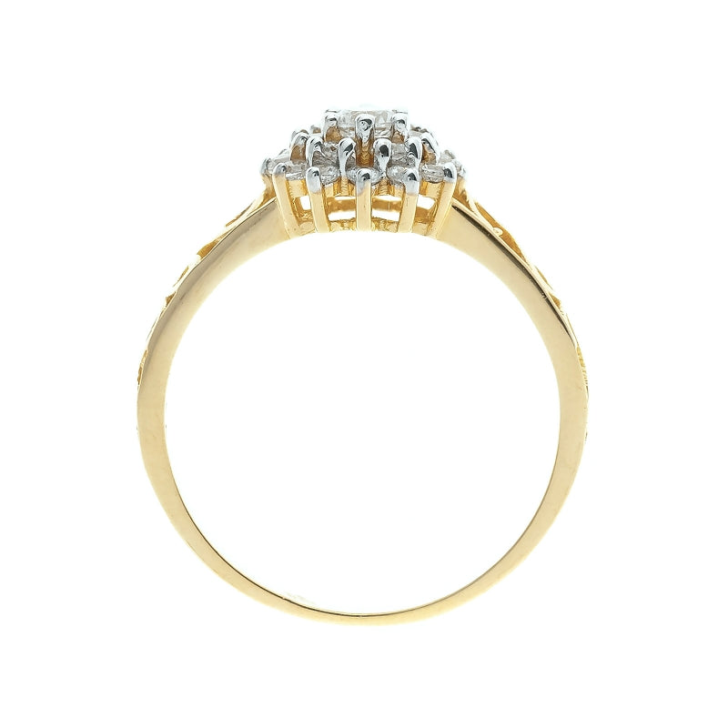 Descoperă eleganța atemporală cu acest inel din aur 8K, un model floral ajurat, o bijuterie rafinată care emană feminitate și stil.