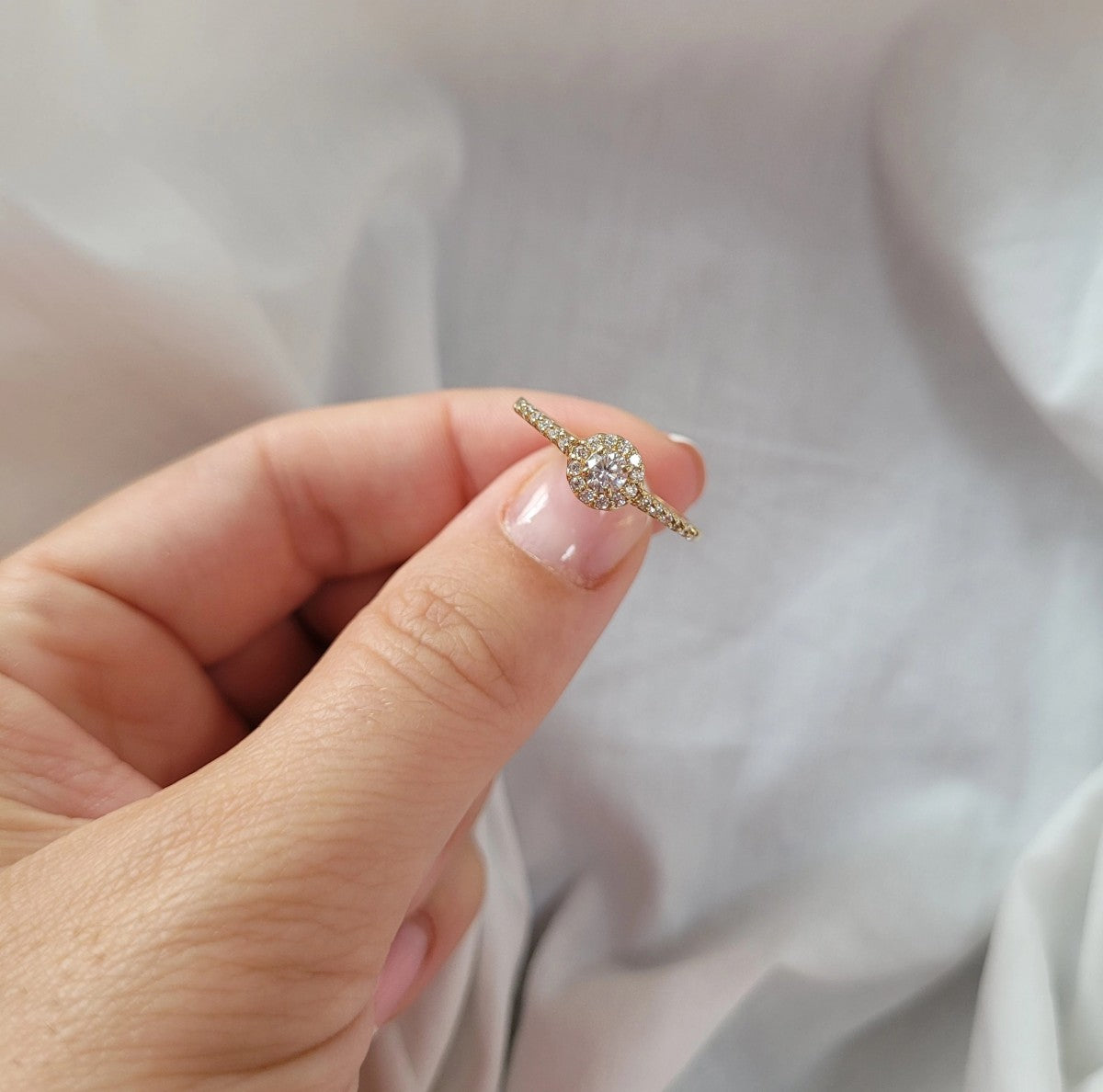Acest inel rafinat este o expresie a feminității și a stilului. Fabricat cu măiestrie din aur 8K, strălucește cu o eleganță discretă.