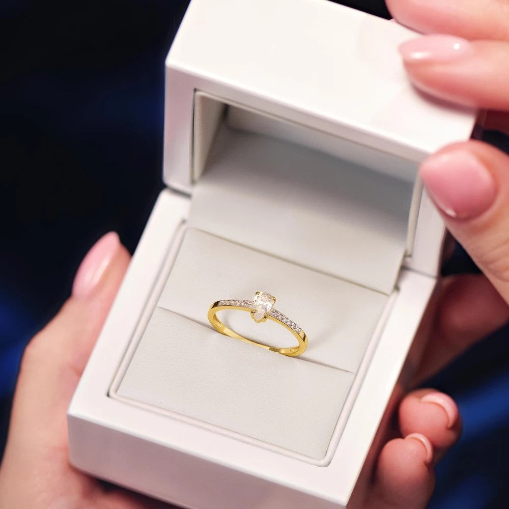 Descoperă eleganța atemporală a acestui inel de logodnă, o declarație subtilă a iubirii eterne. Creat cu măiestrie din Aur 8K, acest inel este un simbol al promisiunii și al angajamentului. Designul său delicat, îmbogățit cu zirconiu strălucitor, capturează lumina și emoțiile momentului, făcându-l o alegere perfectă pentru o cerere în căsătorie de neuitat.