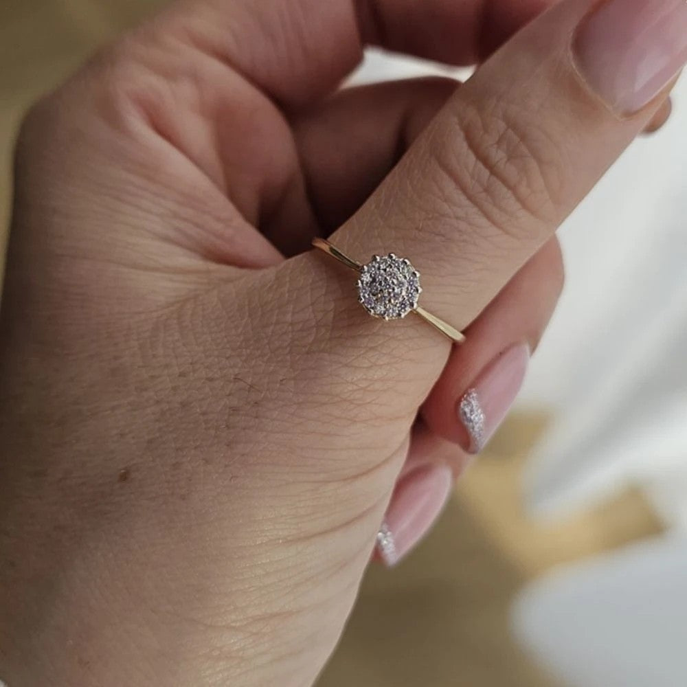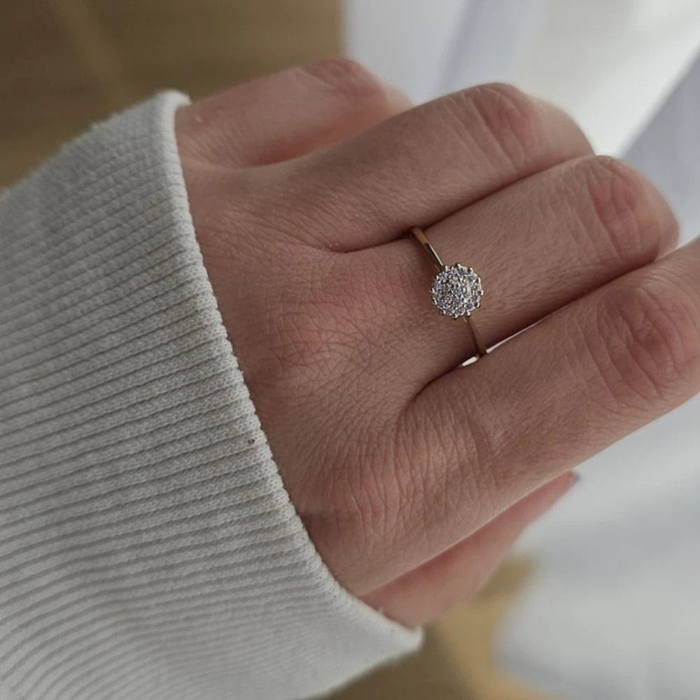• Inel de Logodnă Floare Aur 8K Zirconiu - Eleganță Florală