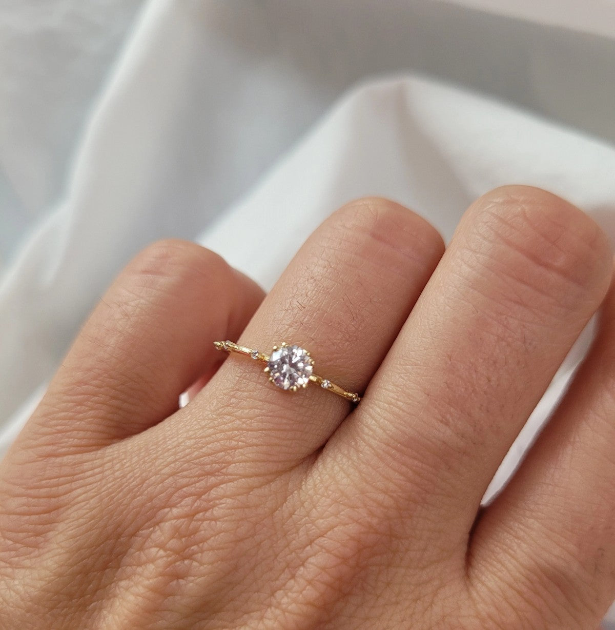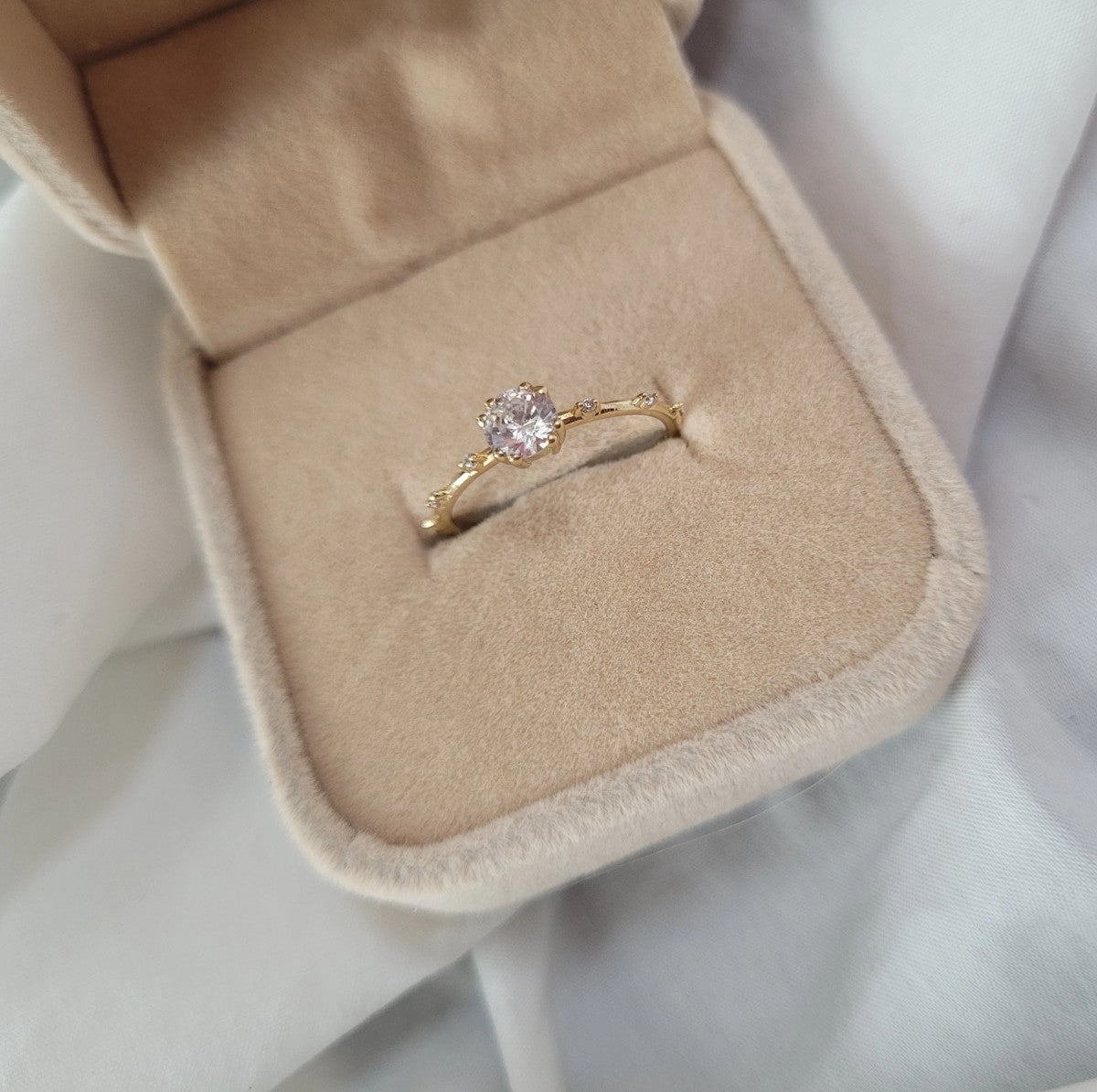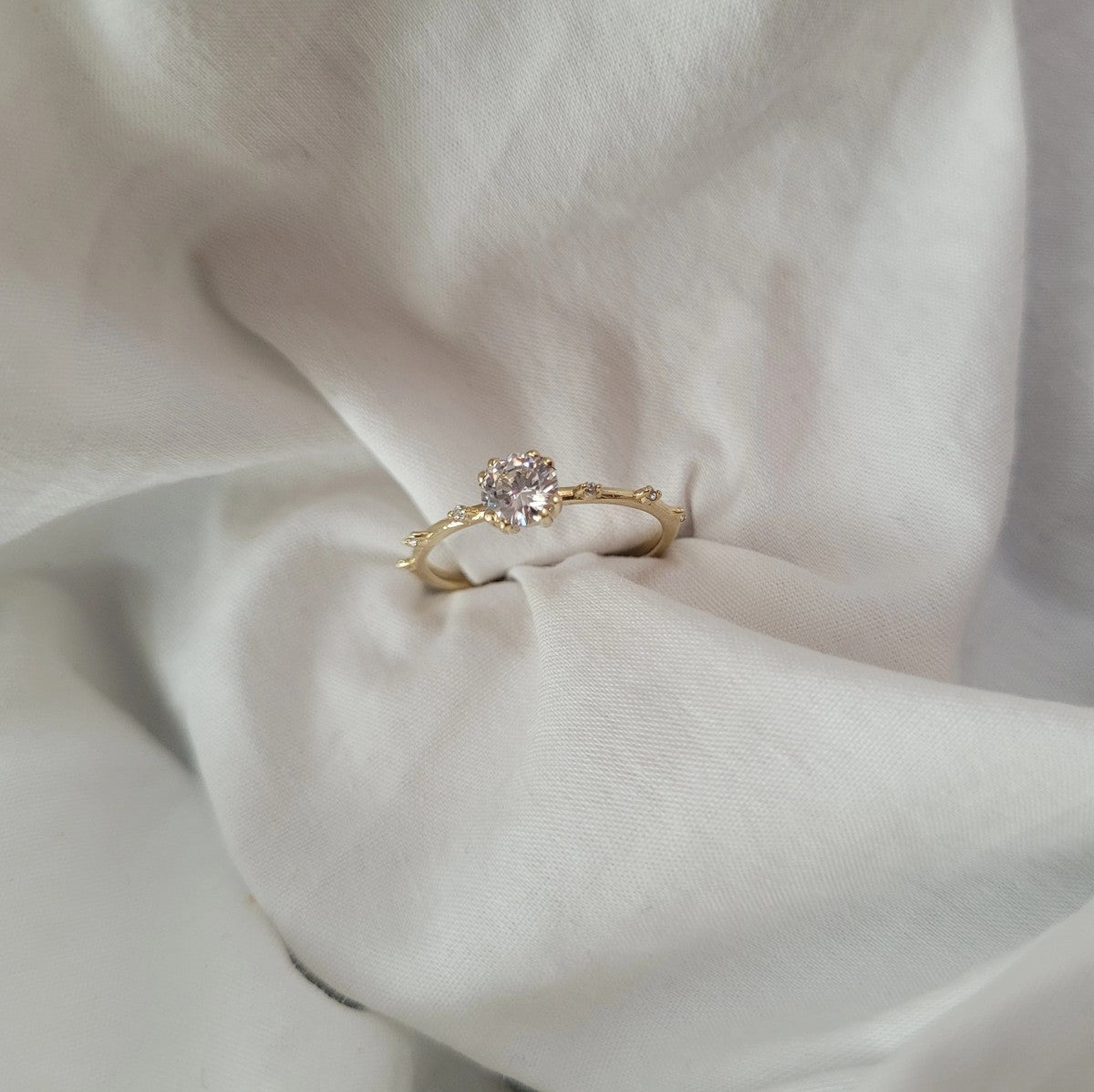 Descoperă rafinamentul pur cu acest inel delicat din aur 8K, o bijuterie care îmbină eleganța subtilă cu un design atemporal. Strălucirea pietrelor albe adaugă o notă de mister și grație, transformând acest inel într-o declarație de stil, perfectă pentru orice ocazie.