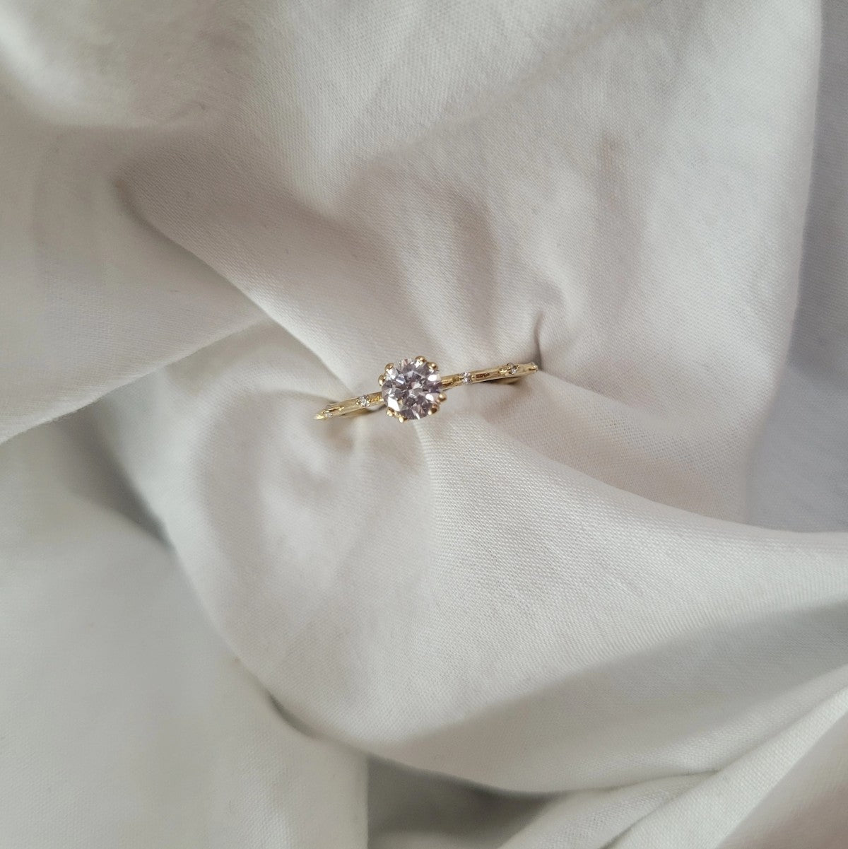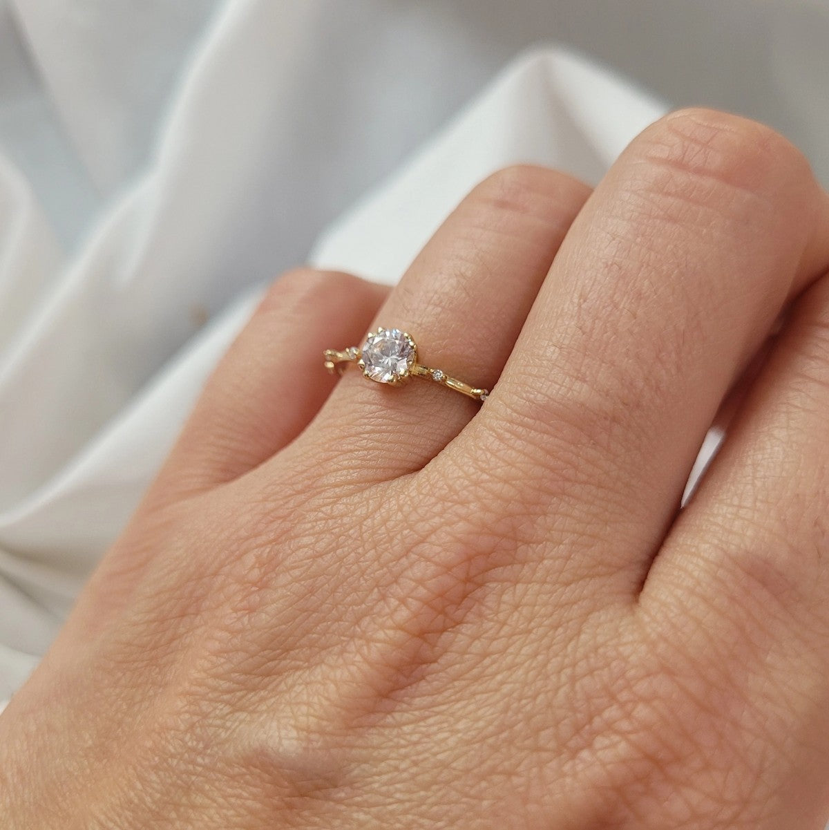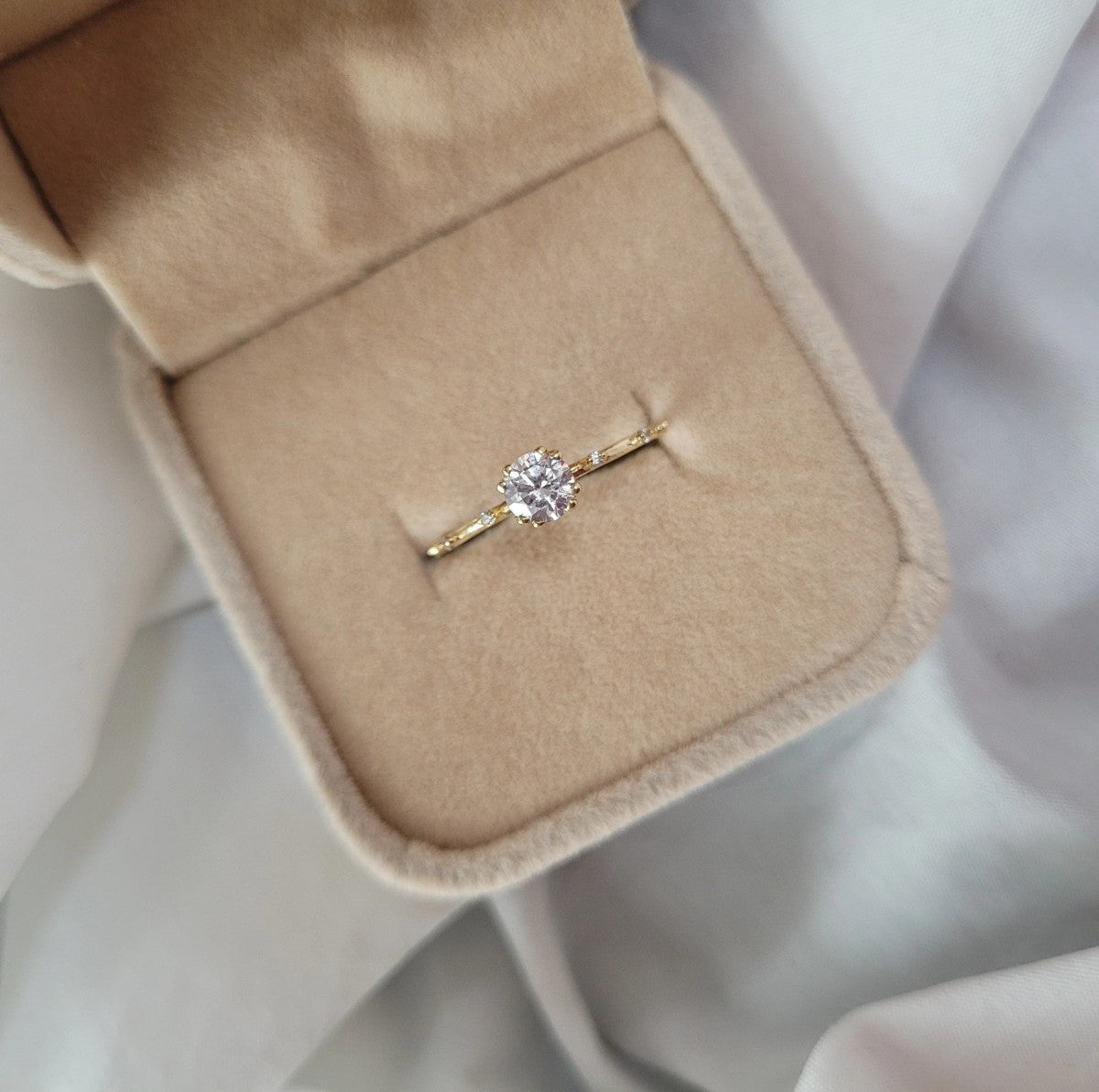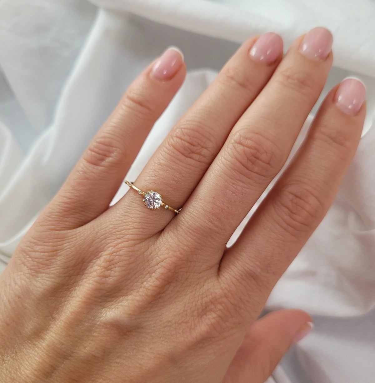 Descoperă rafinamentul pur cu acest inel delicat din aur 8K, o bijuterie care îmbină eleganța subtilă cu un design atemporal. Strălucirea pietrelor albe adaugă o notă de mister și grație, transformând acest inel într-o declarație de stil, perfectă pentru orice ocazie.