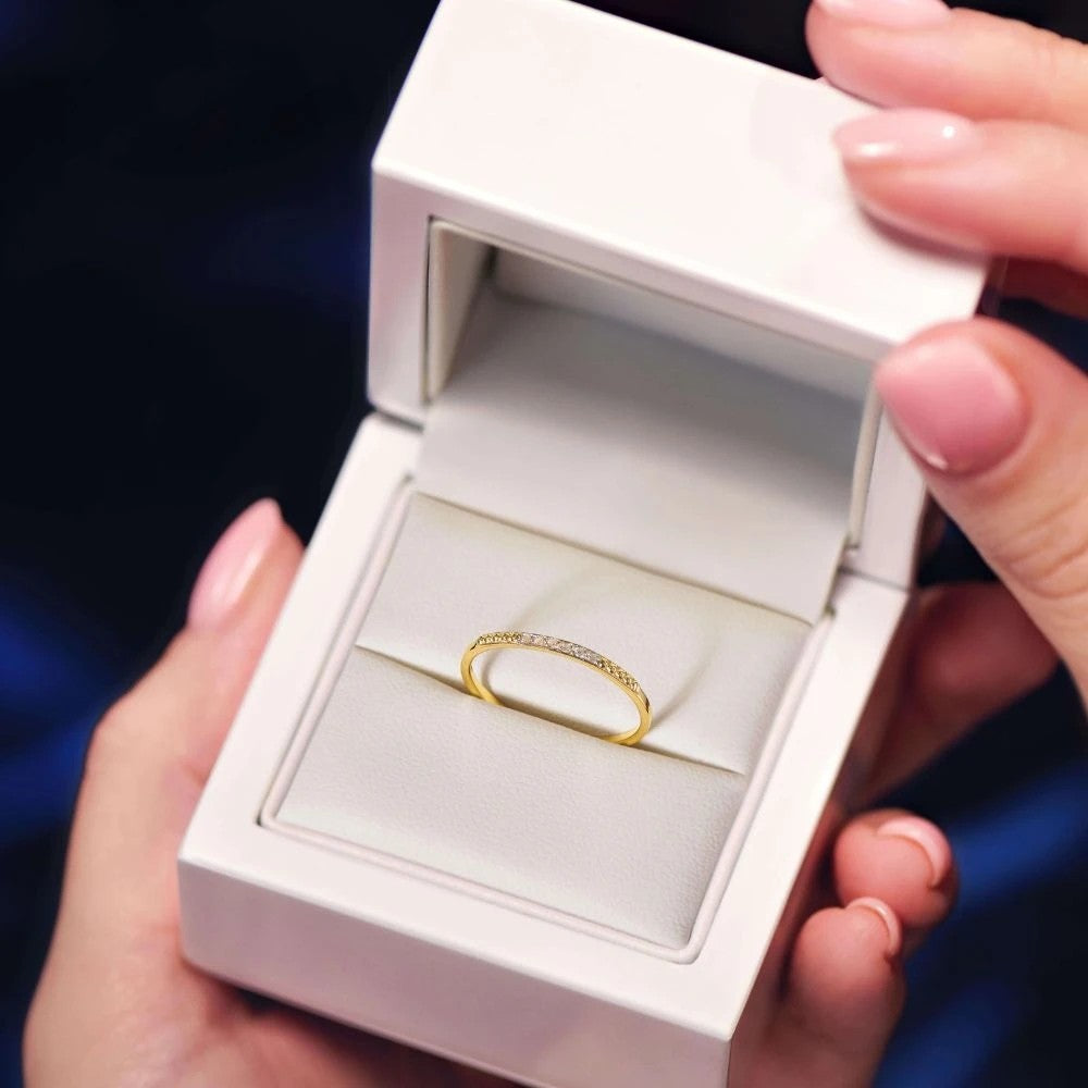 Acest inel este perfect pentru a adăuga o notă de strălucire subtilă și rafinament oricărei ținute. Zirconiile delicate și aurul de înaltă calitate se combină pentru a crea o bijuterie care va atrage privirile și va rezista testului timpului. Designul delicat îl face ideal pentru purtarea zilnică sau pentru ocazii speciale.