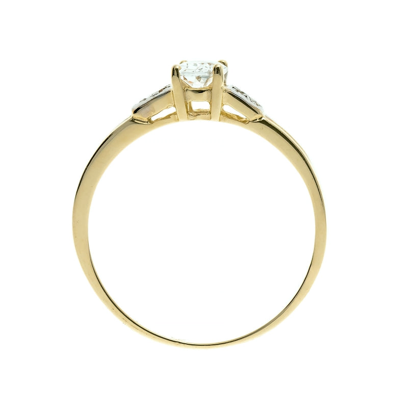 Acest inel elegant este confecționat din aur de 8K (333), un aliaj prețios care oferă o strălucire subtilă și o durabilitate remarcabilă. Designul său include o piatră centrală ovală, frumos evidențiată, înconjurată de zirconii strălucitoare pe laterale, adăugând un plus de rafinament și un joc subtil de lumini.