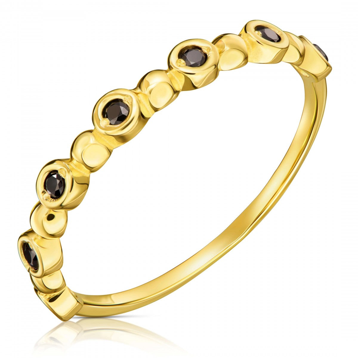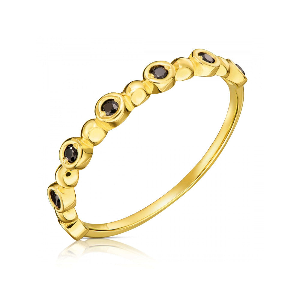 Inel Subțire Aur 8K cu Pietre Negre - Eleganță Simplă