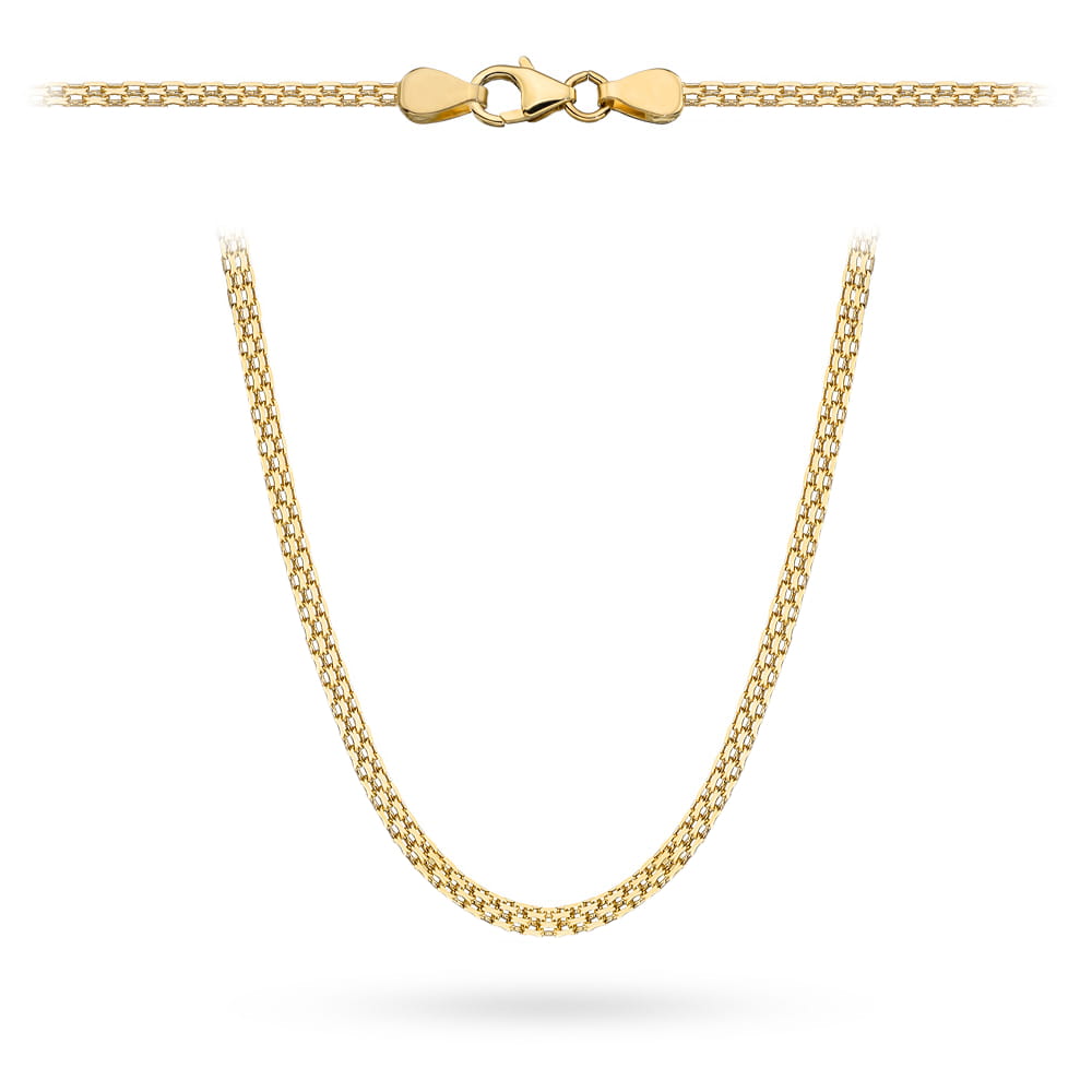 Acest lanț de aur este alegerea ideală pentru cei care apreciază frumusețea clasică și calitatea excepțională. Împletitura Bismarck oferă un aspect bogat și sofisticat, perfect pentru a fi purtat singur sau pentru a completa un pandantiv prețios. Fiecare detaliu este creat cu grijă, reflectând pasiunea pentru perfecțiune.