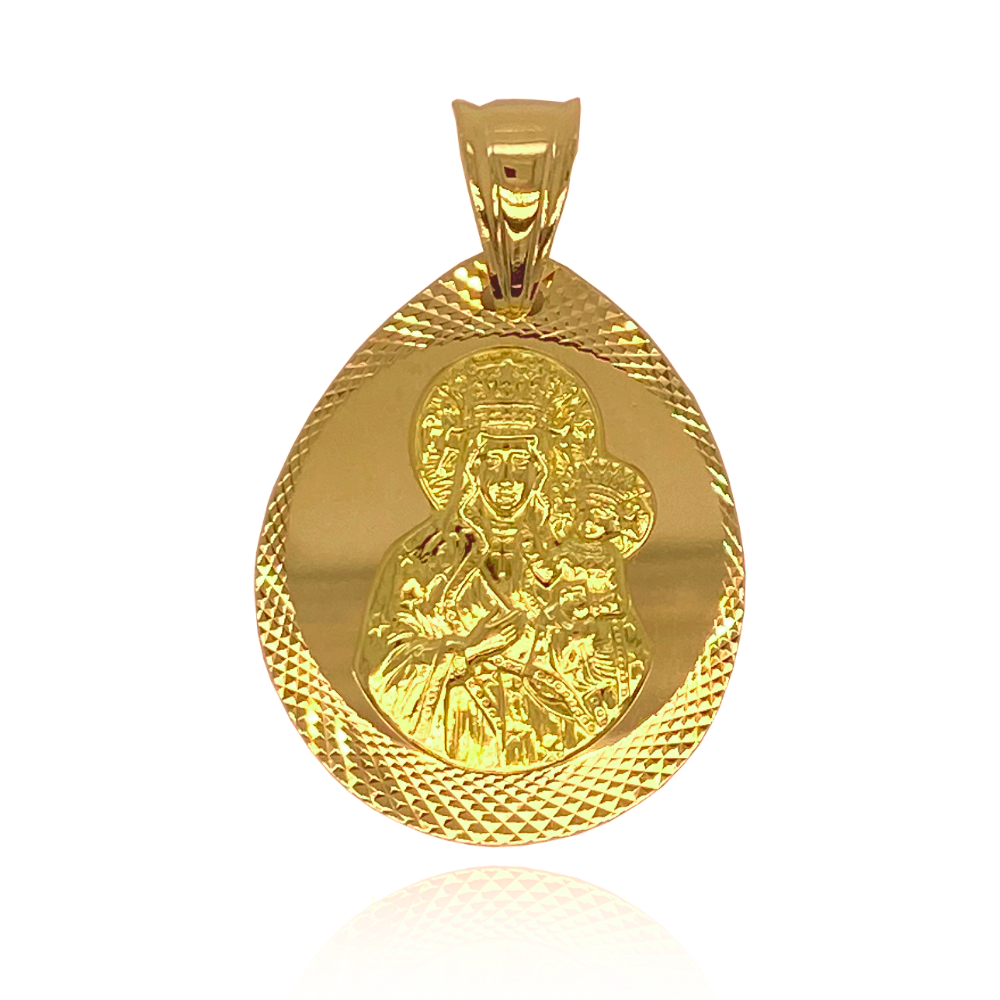 Poartă aproape de sufletul tău acest medalion superb din aur 14K (585), ce reprezintă icoana Maicii Sfinte cu Iisus Hristos.
