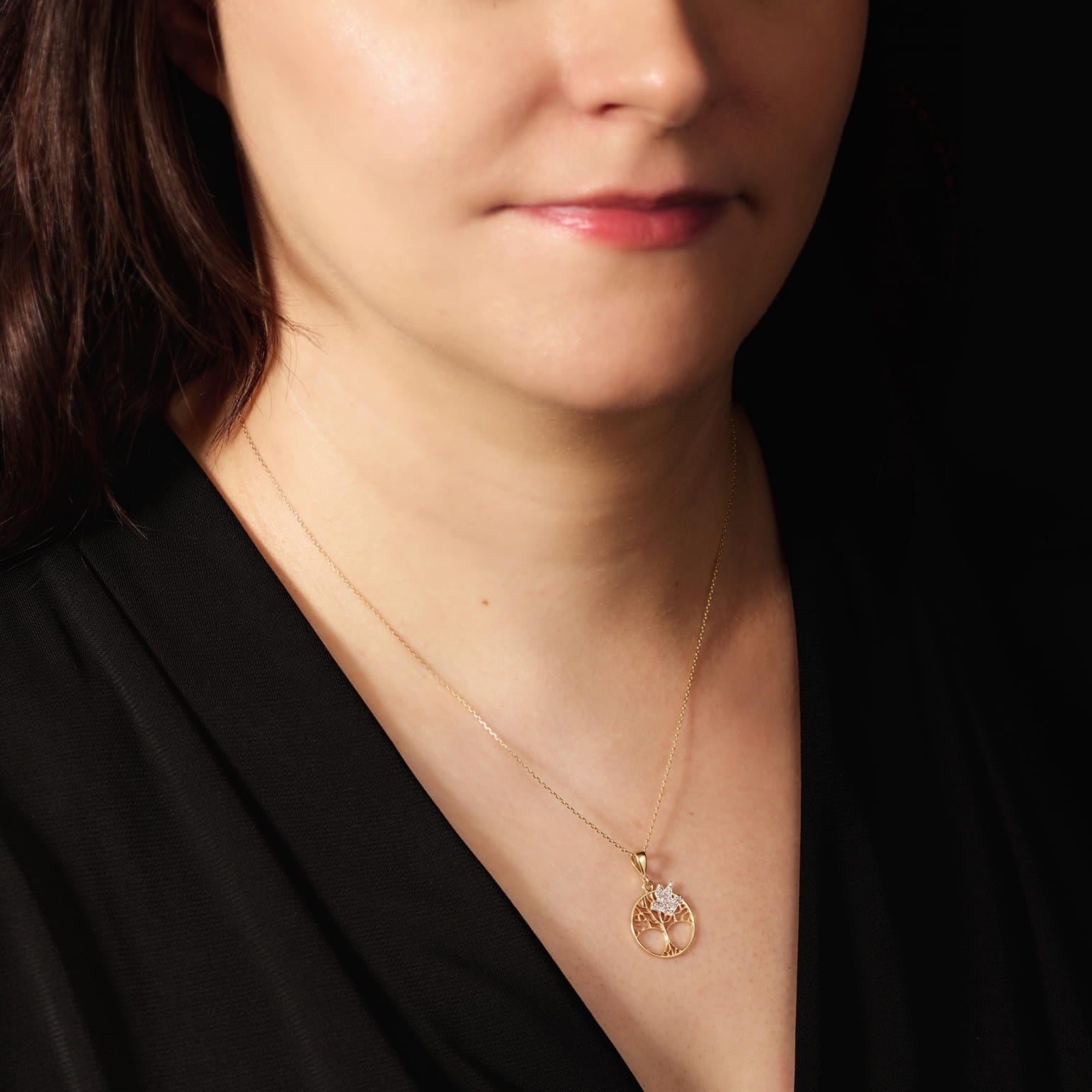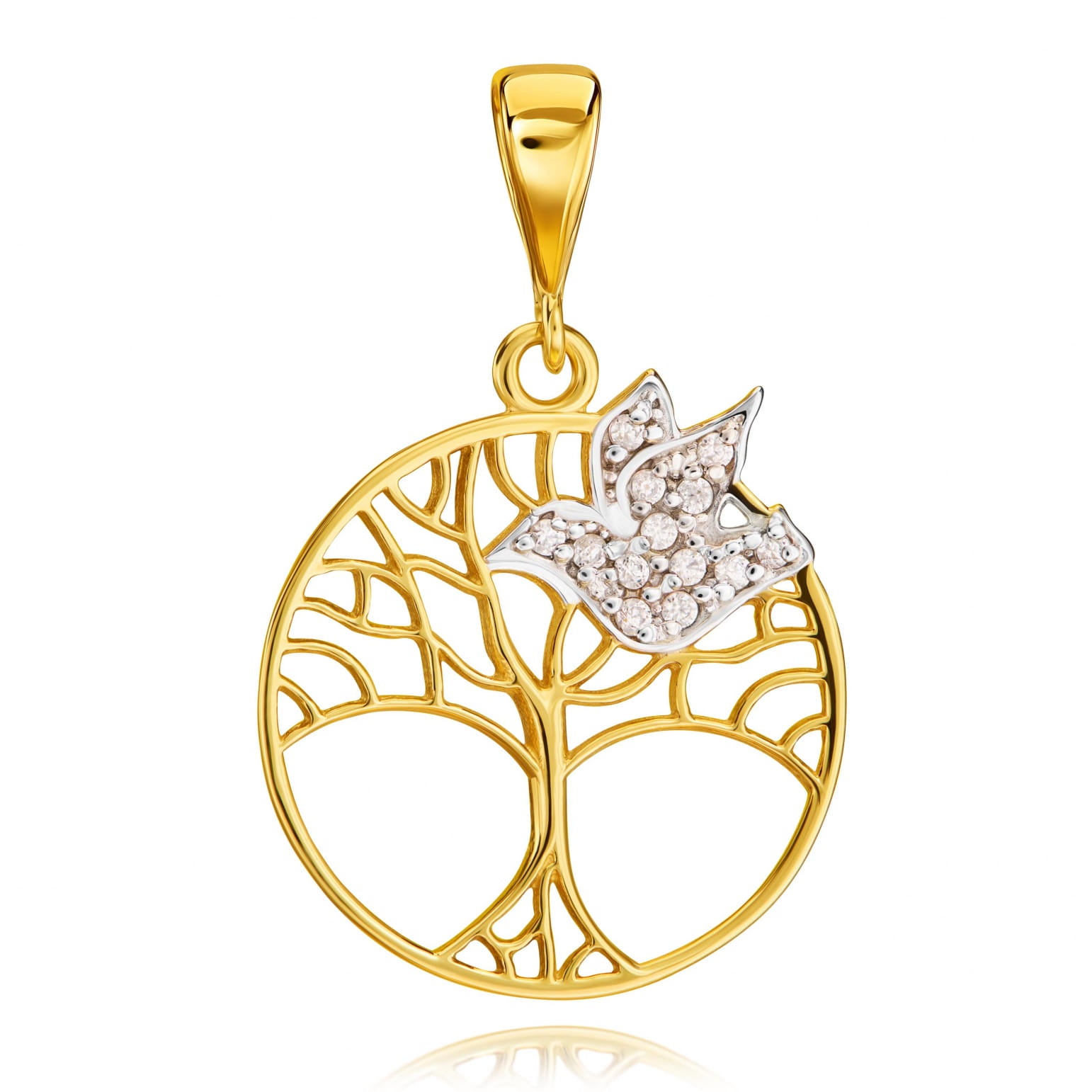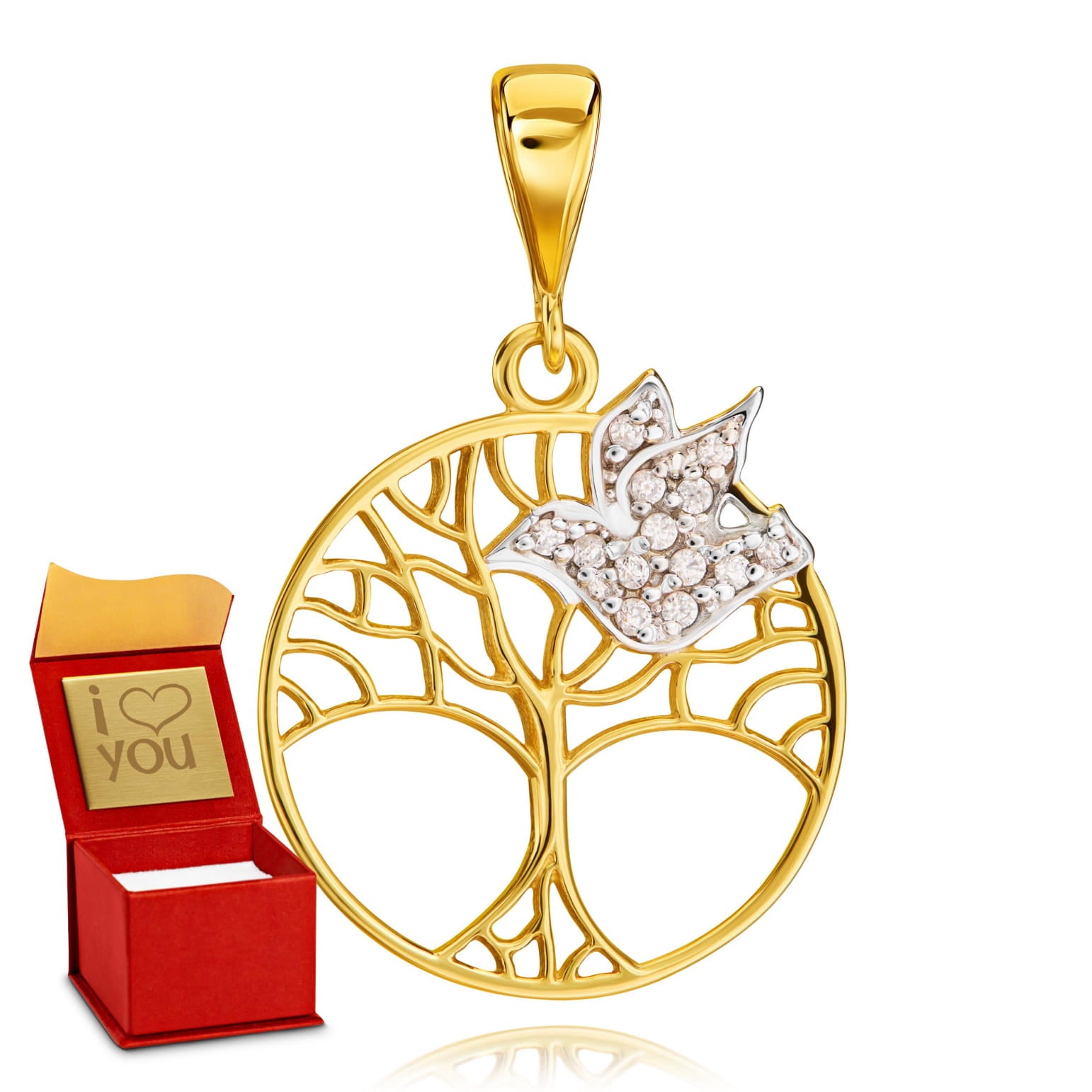 Pandantiv Aur 8K Copacul Vieții cu Pasăre Albă