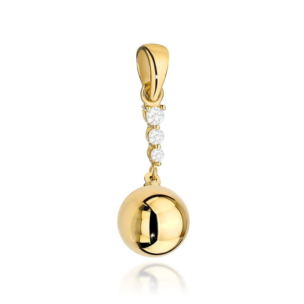 Descoperă rafinamentul acestui pandantiv bilă din aur galben 14K, împodobit cu zirconii delicate ce captează lumina cu fiecare mișcare. O bijuterie perfectă pentru a adăuga o notă de eleganță și strălucire oricărei ținute.