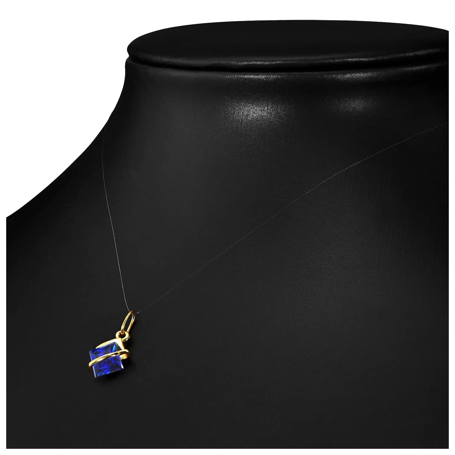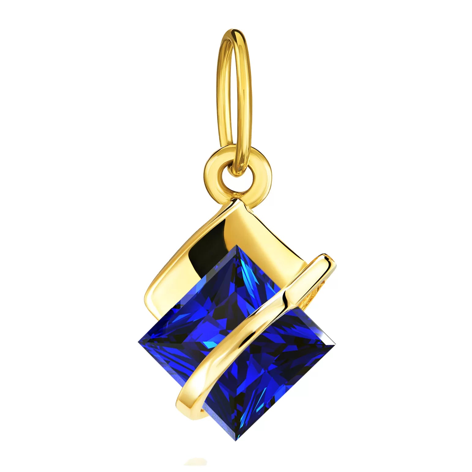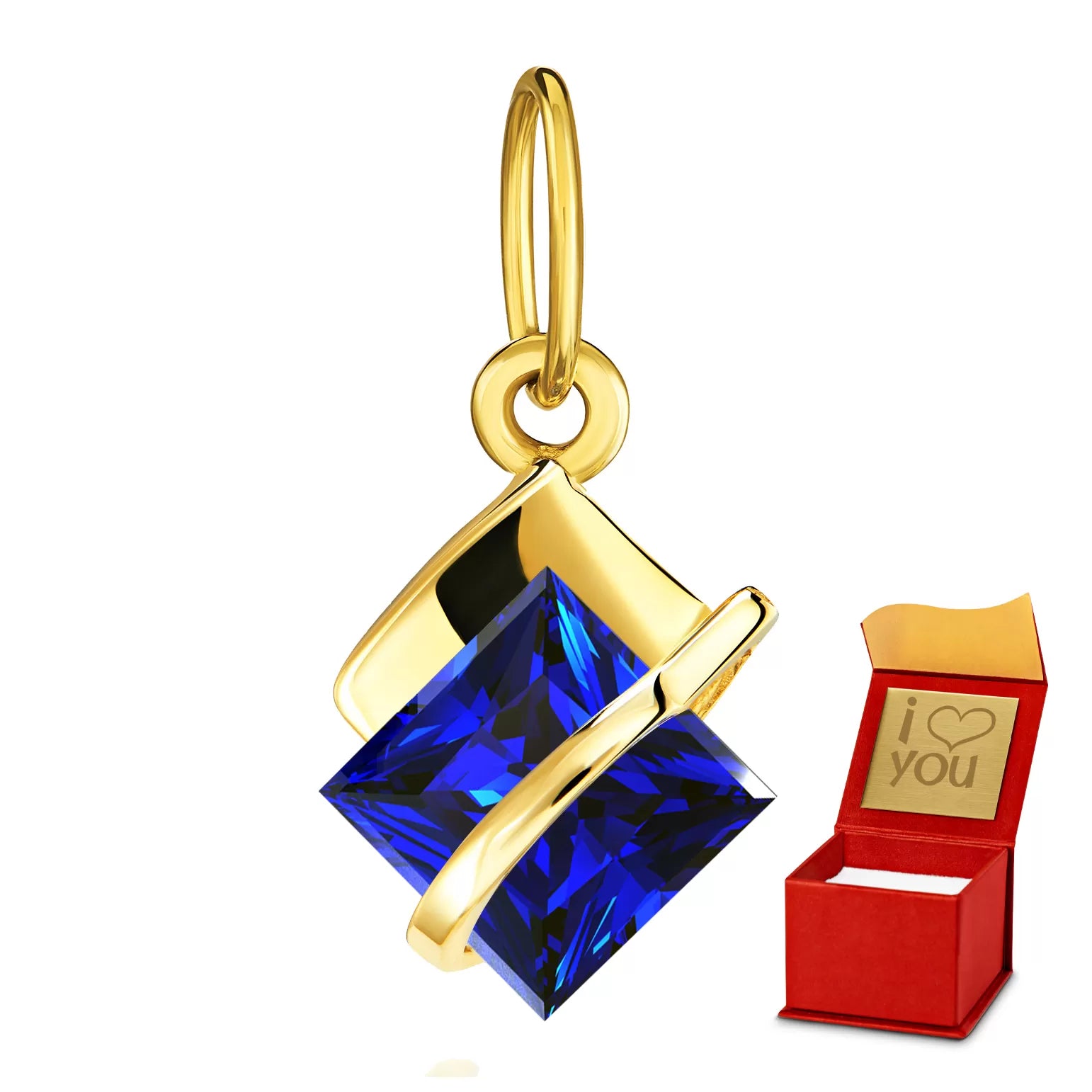Pandantiv din Aur 8K cu Zirconiu Albastru, Formă Pătrată
