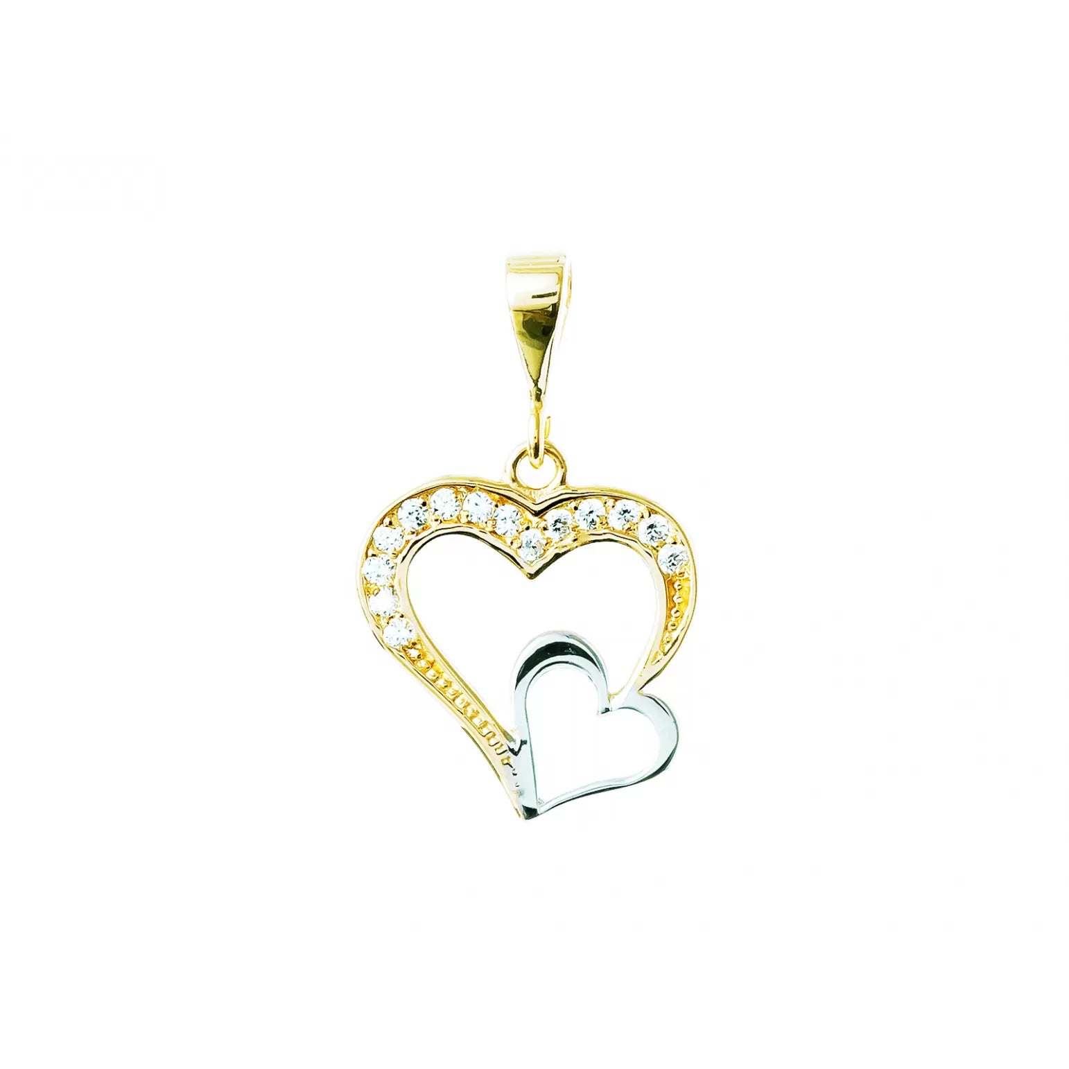 Pandantiv Elegant din Aur 8K în Formă de Inimă, cu Zirconii Albe